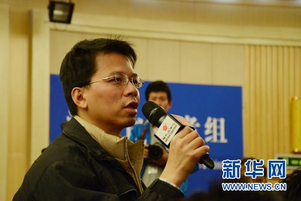 2011年3月9日上午9時 ,十一屆全國人大四次會議新聞中心在梅地亞中心多功能廳舉行主題為“保障性住房建設和房地產市場調控”記者會。圖為臺灣工商時報記者提問。(新華網 吳莼 攝)