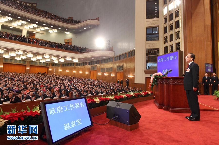 3月5日,第十一屆全國人民代表大會第四次會議在北京人民大會堂開幕。這是國務(wù)院總理溫家寶作政府工作報告前向全體代表鞠躬。新華社記者蘭紅光攝