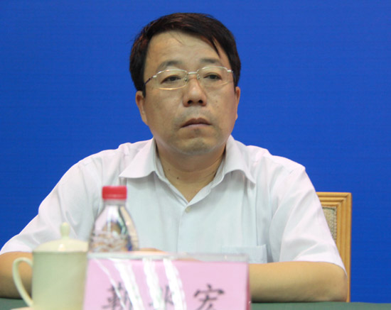 東平縣委常委、宣傳部長靳兆宏出席新聞發布會。
