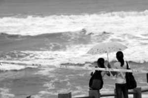 8月7日,游客在青島市嶗山區小麥島上游玩時,突遇臺風“梅花”所致的海上大浪,小島與陸地唯一相連的堤壩被阻斷,83人被困島上。青島市公安局接到報警,邊防、公安、消防等部門人員緊急趕赴現場展開救助。救援人員利用浪頭短暫間歇,分6批次將被困人員護送至陸地,使他們全部脫險。圖為一名被困的姑娘鞋子丟了,救援隊員背著她走過堤壩。