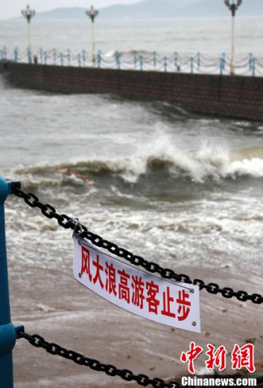 8月7日,山東青島棧橋海域掀起大浪。中新社發 黃杰顯 攝 圖片來源:CNSPHOTO
