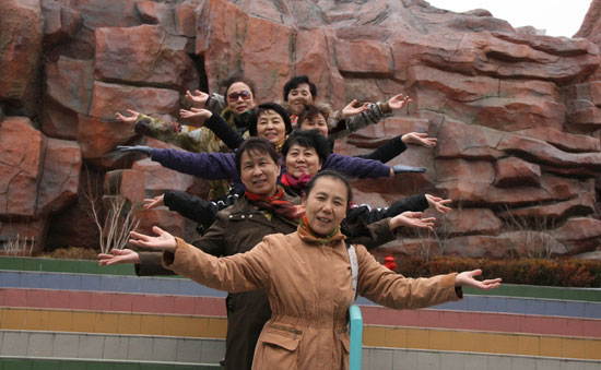 姜梅榮: 今天三月六日,學校組織全體女教師和女工作人員到泰安方特歡樂世界旅游,這是在清點人數排隊入場。每位門票190元,團體打折。