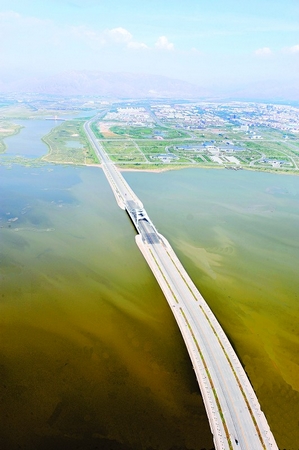 沙湖的開發和保護并重,俯瞰鳥島蘆葦保護區,沙湖呈現給人的是一派生態和諧的可持續發展景象。