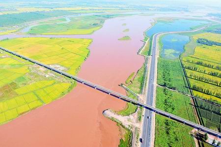黃河之水從濱河大道走來,黃河金岸綠洲稻花飄香。