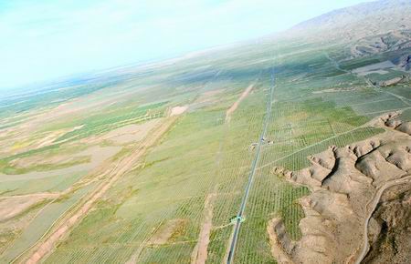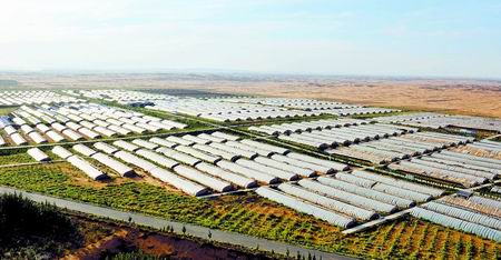 10萬畝棗瓜間作帶鋪綠戈壁灘。