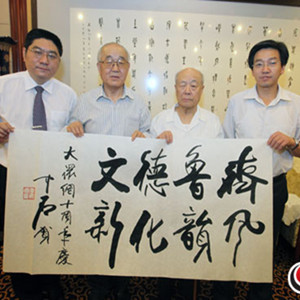 4月18日,大眾網董事長、總經理林忠禮,頻道建設部主任張峰一行赴京,拜訪了我國當代著名書法家、中央文史館館員歐陽中石先生。會談中,林總就大眾網山東文化網絡平臺建設以及網站十周年慶典等事宜向中石先生征求建議,中石先生誠懇地表示,自己愿意為家鄉的網絡文化事業做點事情,并親自為文史頻道題寫了“齊風魯韻”的賀詞。