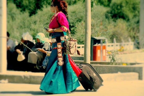 行色匆匆身著民族服飾的美女讓大家忍不住用鏡頭追隨。
