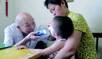 2010年夏天山崎宏在診所為孩子看病的場景。(資料片)