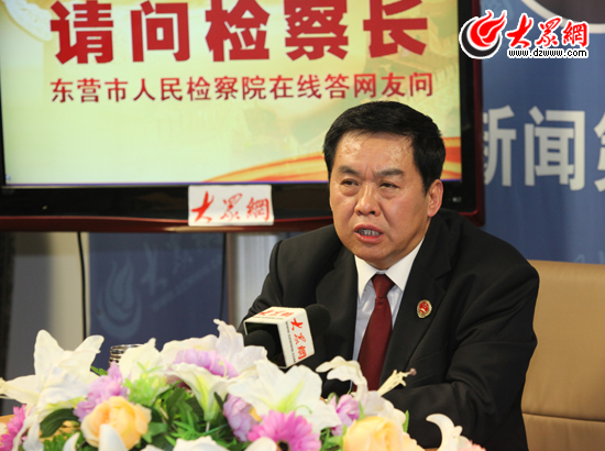 大眾網(wǎng)濟(jì)南10月27日訊(記者 盛堃)打擊涉油刑事犯罪,東營(yíng)市檢察機(jī)關(guān)有“五大利器”;服務(wù)“黃藍(lán)經(jīng)濟(jì)區(qū)”建設(shè),東營(yíng)市檢察機(jī)關(guān)有“六大法寶”;服務(wù)保障文化建設(shè),東營(yíng)市檢察機(jī)關(guān)還有“七大做法”。今天上午,大眾網(wǎng)專訪了東營(yíng)市人民檢察院檢察長(zhǎng)馬英川。在半個(gè)小時(shí)的時(shí)間里,馬英川用“五、六、七”三段通俗易懂的總結(jié)向網(wǎng)友詳解了東營(yíng)市人民檢察院的工作經(jīng)驗(yàn),繪出一副“黃藍(lán)交融區(qū)”里人民檢察院的發(fā)展藍(lán)圖。