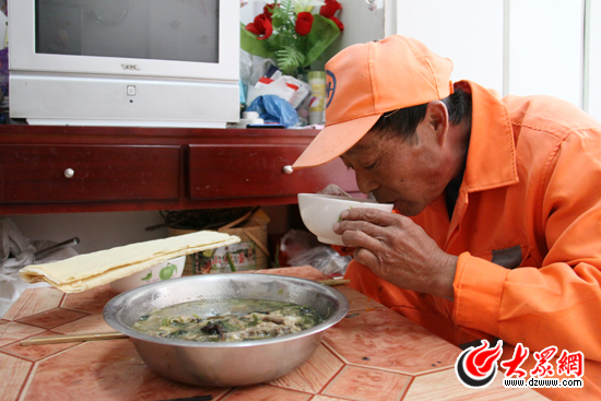 陳杰告訴記者,現(xiàn)在“雙節(jié)相遇”,千佛山廟會正在舉行。為了保持環(huán)境衛(wèi)生,歷下環(huán)衛(wèi)部門在千佛山北門附近放置了8個一米多高的垃圾桶,所以,他要多跑幾趟垃圾處理場。“那您的一日三餐怎樣解決呢?”記者問道。“我和對象輪流回家吃。早晨8點回去,8點半就要趕回來。”陳杰笑著告訴記者。
