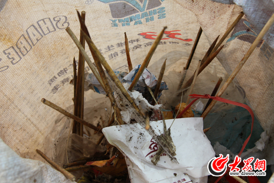 用了至少半個小時,記者沿著經(jīng)十一路北側(cè)副道一直走到山東省文物局并折回原地,低頭看看手中的垃圾袋已經(jīng)“戰(zhàn)果豐厚”。除了幾塊犬只糞便外,道路上和綠化帶中的煙頭成為了“主力”,粗略數(shù)了一下,不足兩公里的路程竟然撿拾了28支煙頭。而且是一次“普掃”后的戰(zhàn)果。在垃圾袋里,還有記者從磚縫、綠化池等死角中清理出的竹簽,這都是市民在食用完糖葫蘆與各種肉串后隨手丟下的,這些竹簽既污染了環(huán)境,也造成了一定的安全隱患。在所有垃圾中,最難清理的莫過于被踩碎的花生皮和栗子皮。在千佛山景區(qū)周圍,有不少賣糖炒栗子和炒花生的商販,部門市民隨手將果皮扔到地上又被其它人踩碎,著實給環(huán)衛(wèi)工人增添了不少麻煩。
