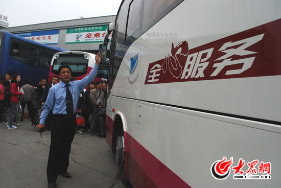 [提要] 每天早上4點起床,晚上11點回家,一天需要調度上千輛客車,發送數萬乘客,這樣的工作苦嗎?這樣的工作累嗎?“十一”黃金周的第一天,早上6點,大眾網記者來到號稱“中華第一站”的濟南長途汽車總站,因為工作超級繁忙,大眾網記者只能一路小跑,“追”著采訪調度科副科長張傳滿。