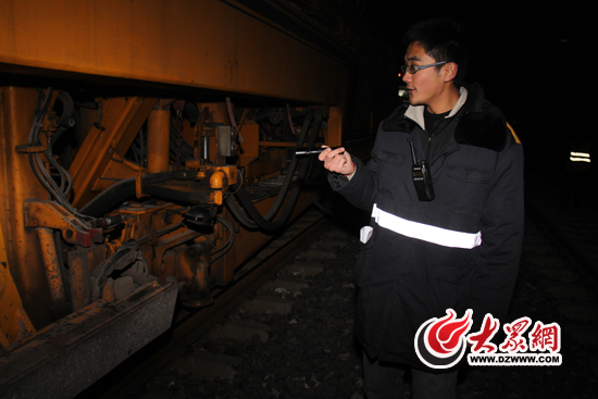 26歲的班長李法宗檢車設備運行情況。(大眾網記者 馬鑫攝)