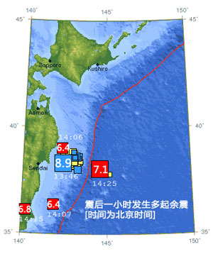 據日本媒體報道,北京時間今天13:46,日本本州島東北部宮城縣以東海域發生強烈地震,最初報出的震級為7.9,日本氣象廳剛剛又修正了震級為8...(詳細) |