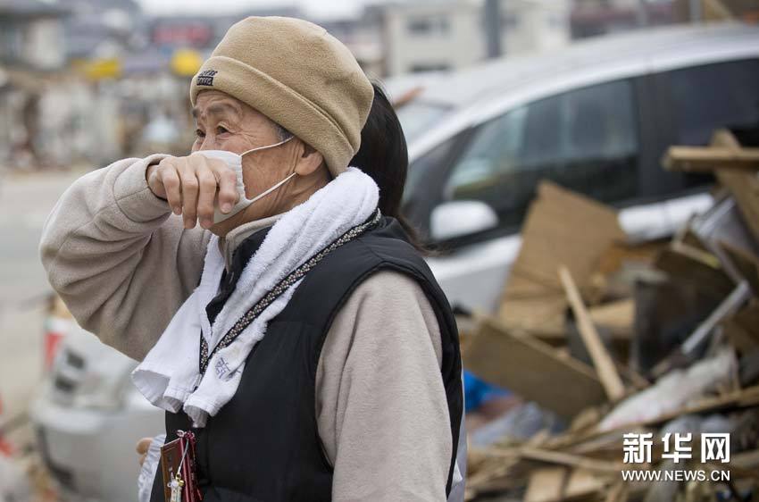 3月15日,災(zāi)民站在日本巖手縣大船渡市災(zāi)區(qū)廢墟前。當(dāng)日,據(jù)巖手縣大船渡市市政府公布的最新數(shù)字,該市共失蹤191人、死亡206人。 新華社記者呂小煒攝