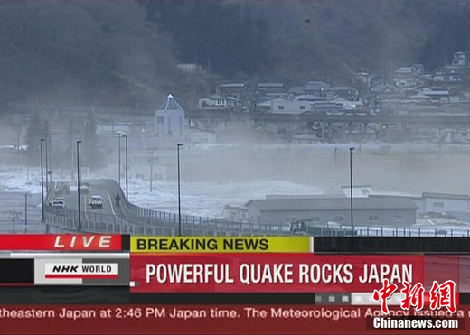 中新網(wǎng)3月11日電 據(jù)共同社報(bào)道,當(dāng)?shù)貢r間3月11日下午,日本東北地區(qū)以宮城縣為主的地方發(fā)生里氏8級以上強(qiáng)震,并引發(fā)大規(guī)模海嘯,截至目前,地震和海嘯已造成至少32人死亡,30多人失蹤,一艘載有約100人的船只被大浪卷走,宮城縣一處空軍基地已基本被淹沒。