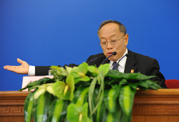 十一屆全國人大四次會議于3月4日(星期五)上午11時在人民大會堂三層金色大廳舉行新聞發布會,由大會發言人就會議議程和人大工作相關的問題回答中外記者的提問。圖為大會發言人李肇星。翟子赫 攝