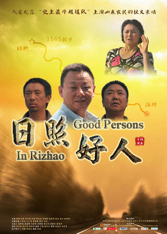 本著發揚民族精神的初衷,創作人員經過了多番劇本研討、辛苦拍攝、專家指導等過程,終于在汶川地震三周年之際,將“史上最牛救援隊”的故事搬上了銀幕。電影《日照好人》講述了山東農民自發抗震救災的路上所發生的點點滴滴。他們大多數“第一次出遠門”,經歷了三輪車不允許上高速公路、管閑事被毆打、違反交通規則被罰款、順子爺爺突然去世、山高路陡處險些喪命等一系列困難,但最后卻沒有一個人退縮,在經歷了種種磨難以后,他們最終知難而上,順利到達了目的地。《日照好人》以詼諧幽默的表演,鮮活的人物刻畫,再現了山東人民以及其他全國各地區人民的抗震救災義舉。該片已榮獲2011年首批全國推薦優秀影片,國家電影審查委員會委員、中國電影評論學會副會長王人殷觀看影片后說“它鮮活地反映了中國的面貌,它不是概念的、不是口號的、是很真誠的,為中國電影畫廊里增加了一個新形象”。本片因取材獨特,意義非凡,吸引了邵峰、李玉峰、李勤勤、于月仙等眾多實力派演員出演,演員范雷也加盟其中,并擔綱主演。不僅如此,導演楊真也是地地道道的山東人,濃郁的地域特色增加了影片的真實性和趣味性。