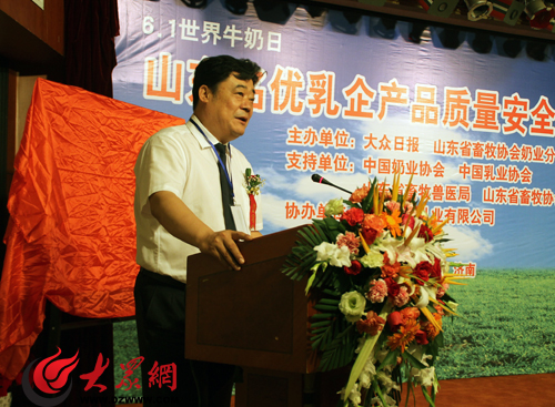 濟南佳寶乳業有限公司總裁李勝偉代表企業宣讀《山東名優乳企產品質量安全承諾書》。