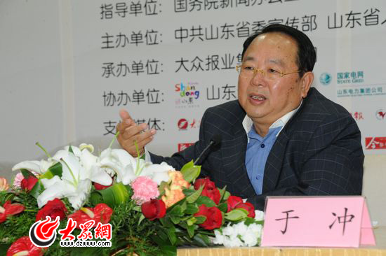 山東省旅游局局長于沖回答記者提問。(燕雨 攝)