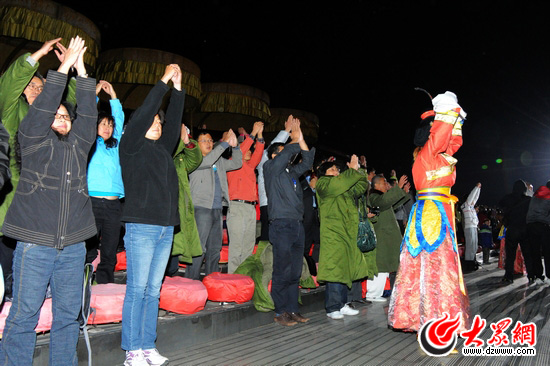 演出結(jié)束,觀眾與演員一起互動,參與祈福。(攝影 燕雨)