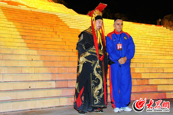 大眾網(wǎng)泰安10月18日訊(記者 馬鑫)“白天登泰山,夜晚觀大典。”這一旅游模式如今已深受眾多來魯游客的喜愛。晚上8點,參加第七屆網(wǎng)絡(luò)媒體山東行采訪團的各家媒體記者們來到天燭峰腳下的《中華泰山·封禪大典》實景演出現(xiàn)場,“盤坐泰山下,眼觀千古情”,在高科技燈光音響映襯下和500余名演員完美的演繹中,品味了一場穿越千年中華歷史的視聽盛宴。