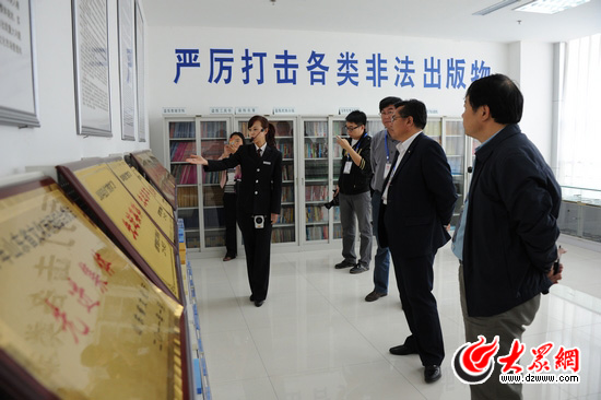 [提要] 今天下午,“文化強省看山東——第七屆中國網(wǎng)絡(luò)媒體山東行”采訪團走進臨沂市文化市場管理執(zhí)法局,這個整合三方力量而成的文化市場執(zhí)法部門,開創(chuàng)了全國文化綜合執(zhí)法的新模式,變原來的多部門管理為一個部門綜合管理,關(guān)口前移形成合力,手指成拳出擊有力。
