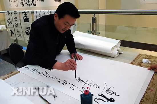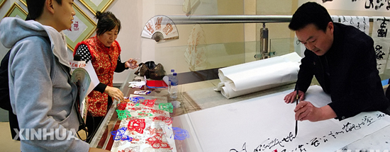 市民正在高密市文化館內揮毫潑墨