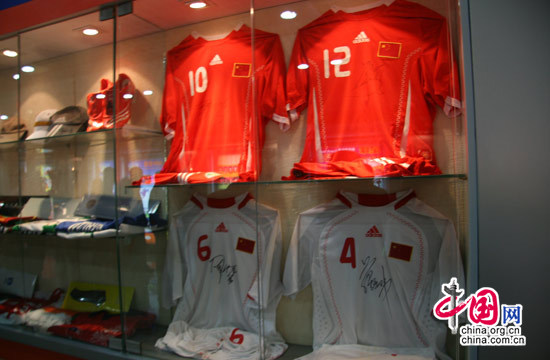 山東魯能泰山足球學校榮譽室內的展品。中國網 傅陽 攝