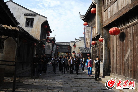 20日采訪團一行走進臨沂國際影視城進行文化產業考察。(攝影 燕雨)