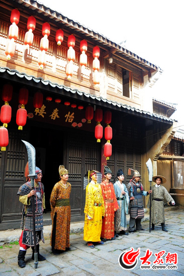 在采訪中,記者了解到,臨沂國際影視城集江浙水鄉、徽派建筑、歐陸風格為一體,建造了商鋪街市區、水陸社戲區、影視模擬拍攝區和賓館休閑區等九大區域,既體現了“白墻青磚黛瓦,小橋流水人家”的江南建筑風格,又融入了魯南地區的歷史文化,把沂州城、沂州渡、沂河水景等當地文化元素有機而巧妙的組合起來,貫穿整個景區。