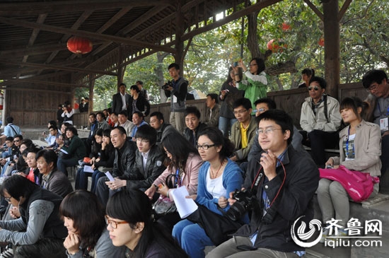 齊魯網10月20日訊 今天上午,第七屆全國網絡媒體行的記者來到了位于臨沂近郊的國際影視城進行采訪參觀。竹樓木舍、小橋流水,影視城內頗具古典氣息的建筑讓人眼前一亮。隨后,記者們來到園區內的中心廣場觀看了氣功與特技表演。