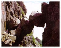 位于泰山瞻魯臺西側,兩崖對峙,下為深澗,上有三塊巨石懸空累迭,連通深澗,其狀如橋,名曰:“仙人橋”。寓意凡人難過,唯神仙可行。仙人橋形勢險要,神韻天成是泰山著名的奇景之一。