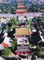 岱廟屬全國重點文物保護單位,舊稱東獄廟或泰山行宮。位于泰安市區北,泰山南麓。它是泰山最大、最 完整的古建筑群,為道教神府,是歷代帝 王舉行封禪大典和祭把泰山神的地方。創建歷史悠久,有“秦即作疇”、“漢亦起宮”之載。唐開元十三年(725)進行增修,宋大中祥符二年(1009)再次進行大規模的擴建,據《重修泰岳廟記碑》所載,時有“殿、寢、堂、闔、門、亭、庫、館、樓、觀、廊、廡八百一十有三楹。”金代部分建筑被毀,元時又有增修,明嘉靖二十六年(1547)廟內大部分建筑遭到焚毀,清代再次修繕。岱 廟城堞高筑,廟貌巍峨,宮闕重疊,氣象 萬千。岱廟創建于漢代,至唐時已殿閣輝 煌。在宋真宗大舉封禪時,又大加拓建, 修建天貺殿等,更見規模。其建筑風格采 用帝王宮城的式樣,周環1500余米,廟內 各類古建筑有150余間。