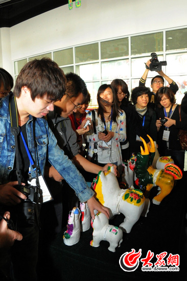 民間手工品讓采訪團成員愛不釋手。(攝影 燕雨)