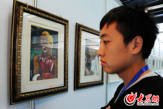 記者在藝術中心參觀畫展。(攝影 燕雨)