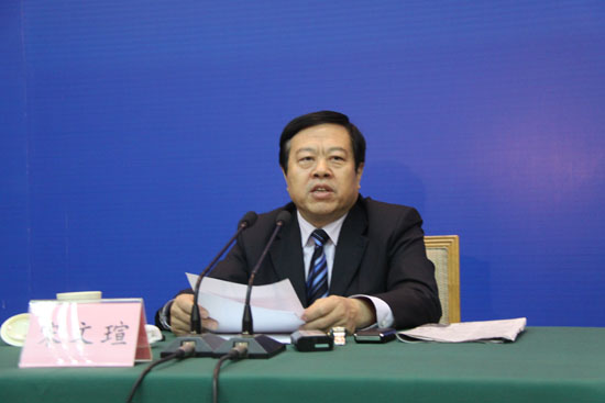 山東省農(nóng)村信用社聯(lián)合社理事長、黨委書記宋文瑄介紹山東省農(nóng)村信用社成立60年來發(fā)展情況。