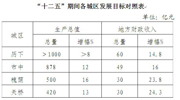 發展目標。到2015年,全區生產總值年均增長13%,達到421億元;地方財政收入30億元,年均增長24.3%;全社會累計固定資產投資突破1000億元;出口創匯累計30億美元,實際利用外資累計4億美元;城鎮居民人均可支配收入年均增長11%,農民人均純收入年均增長12%。