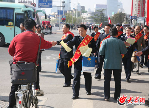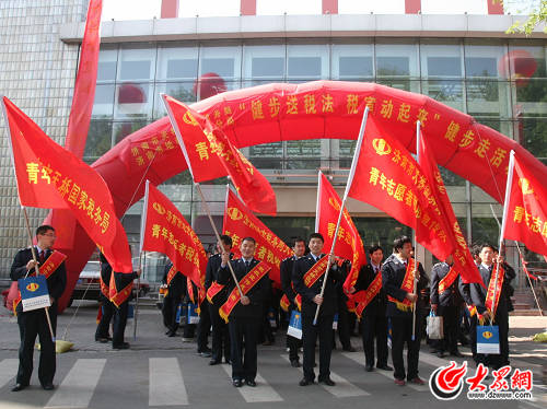 活動(dòng)在濟(jì)南地方稅務(wù)局天橋分局局長(zhǎng)徐文科作了簡(jiǎn)短發(fā)言,并與天橋國家稅務(wù)局局長(zhǎng)王振泉為健步走活動(dòng)代表授旗后,天橋國地稅方陣人員頂著烈日和勁風(fēng)按照東西南北四個(gè)方向邁開指向終點(diǎn)的步伐。在行進(jìn)途中,隊(duì)員們高舉“青年志愿者稅收宣傳隊(duì)”的大旗分外耀眼,范圍遍布天橋區(qū)的商城、市場(chǎng)、廣場(chǎng)、汽車站、火車站、社區(qū)、學(xué)校、醫(yī)院、轄區(qū)的主干道等,邊走邊向過往群眾散發(fā)宣傳資料和稅宣拉畫筆,宣傳稅收政策和稅收知識(shí),解答稅收政策咨詢,引得許多人駐足相問,并索取稅宣資料和稅宣拉畫筆。天橋國地稅通過借助健步走這一別開生面的新舉措,將稅收宣傳的相關(guān)知識(shí),寓于廣大人民群眾喜聞樂見的體育載體中去,增強(qiáng)了稅收宣傳的群眾性、趣味性,進(jìn)一步擴(kuò)大了稅收宣傳的社會(huì)效應(yīng),增強(qiáng)了全社會(huì)依法納稅的意識(shí);也充分展示了國地稅干部職工不怕吃苦、敢于拼搏、團(tuán)結(jié)互助的精神風(fēng)貌,實(shí)現(xiàn)了體育運(yùn)動(dòng)與宣傳稅收的完美結(jié)合,賦予了稅務(wù)文化的新內(nèi)涵。這次活動(dòng)共發(fā)放稅收宣傳資料6000余份、贈(zèng)送稅宣拉畫筆1500多支,解答納稅人咨詢600余人次,真正取得了稅法知識(shí)走進(jìn)老百姓的良好效果,再次掀起稅收宣傳高潮。
