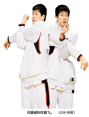 大威,二飛,這是中國男籃隊(duì)友對任駿威、任駿飛哥倆的別稱。這對孿生兄弟長得一模一樣,讓人很難區(qū)分誰是哥哥,誰是弟弟。兩人都生于1990年2月4日,雖說是90后,但作為廣東宏遠(yuǎn)隊(duì)的一員,他們都戴上了CBA總冠軍戒指。在賽場上,只要弟弟任駿飛在內(nèi)線要到位,哥哥的傳球總會(huì)及時(shí)送到,或許,這就是專屬默契。上屆大運(yùn)會(huì)他們也是兄弟倆一起出戰(zhàn)到今年已經(jīng)是連續(xù)第二屆了。年輕人,第一要學(xué)會(huì)的就是坐板凳。這時(shí)候,哥哥就會(huì)像個(gè)長輩:“我打替補(bǔ)的時(shí)候多,旁觀者清,只要他一下場,我就指出他的不足,讓他提高、成長!睂τ谖磥,兩兄弟有著明確的目標(biāo),“做中國的加索爾兄弟!”