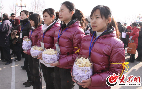 大眾網泰安1月10日訊(記者 劉國棟)今天上午10點,在泰安四烈士的追悼會現場,泰安一家幼兒園的四位老師胸帶白花,胳膊上系著黃絲帶,在英雄的靈前深深鞠躬對4位英雄表示悼念,她們獻上了幼兒園師生一起折的一千只紙鶴寄托哀思。
