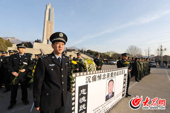 泰山南麓,哀樂聲鳴。從今天上午8:30起,泰安市全體公安民警在泰安市革命烈士陵園革命展覽館舉行悼念活動。泰安市市民及社會各界人士數千人手捧鮮花,也來到革命展覽館,深切緬懷在“1.04”襲警案件中殉職的兩名民警和一名協(xié)勤。稍后大眾網將帶來詳細報道。