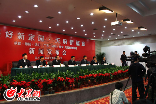 發布會上,成都、德陽、綿陽、廣元、阿壩、雅安6個重災市州的負責同志介紹了本市(州)災后恢復重建情況。特大地震發生三年來,中央作出“一省幫一重災縣”對口支援部署,18個對口援建省市積極響應,全力為中央分憂、為災區解難。四川人民大力弘揚偉大抗震救災精神,“苦干三年、跨越二十年”,創造了抗震救災的奇跡、災后重建的奇跡和加快發展的奇跡,已經從悲壯走向新生。據在場官員介紹,災區多個市州災后重建工作已經基本完成,重建后基本生活條件和經濟社會發展水平總體超過災前,很多地區發展預計前進十至二十年。