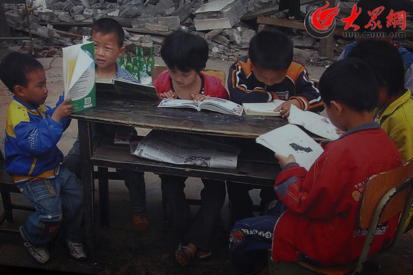 馬鹿鄉中心小學的小學生在震后學習(資料圖)