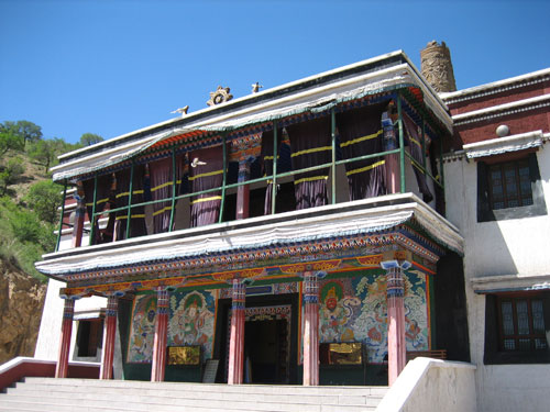 在包頭市連綿起伏的大青山深處,有一座氣勢(shì)磅礴,規(guī)模宏大的藏式喇嘛廟,這就是國(guó)家重點(diǎn)文物保護(hù)單位、4A級(jí)旅游景區(qū)、聞名遐邇的五當(dāng)召。它與西藏的布達(dá)拉宮、青海的塔爾寺和甘肅的抗卜楞寺齊名,是我國(guó)喇嘛教的四大名寺之一。五當(dāng)召原名巴達(dá)嘎?tīng)枏R,藏語(yǔ)巴達(dá)嘎?tīng)栆鉃?白蓮花"。蒙古語(yǔ)五當(dāng)意為"柳樹(shù)",召為"廟宇"之意。始建于清康熙年間(1662-1722),乾隆十四年(1749年)重修,賜漢名廣覺(jué)寺,是第一世活佛羅布桑加拉錯(cuò)在此興建的,逐步擴(kuò)大始具今日規(guī)模。因召?gòu)R建在五當(dāng)溝的一座叫做敖包山的山坡上,所以人們通稱其名五當(dāng)召。五當(dāng)召依地勢(shì)面南而建,它是一幢層層依山壘砌的白色建筑,群山環(huán)繞,蒼松翠柏掩映,顯得十分雄渾壯觀。