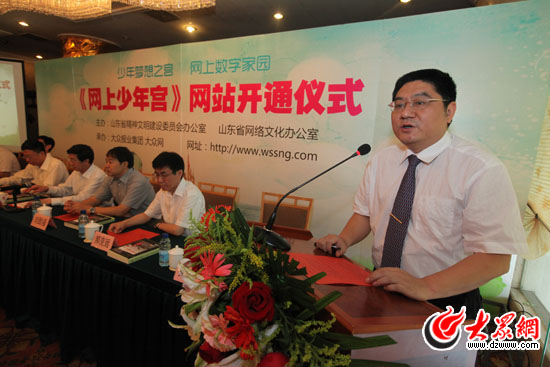 中央文明辦未成年人思想道德建設工作組副組長張志勇,中央文明辦未成年人思想道德建設工作組處長李衛強,中共山東省委宣傳部常務副部長、山東省文明辦主任姜鐵軍,大眾報業集團社長、黨委副書記許衍剛,山東省網絡文化辦公室主任劉致福,大眾報業集團黨委常委、副總編輯郝克遠,山東大眾傳媒股份有限公司(大眾網)董事長、總經理林忠禮等出席“網上少年宮”開通儀式,大眾網總編輯朱德泉主持了儀式,大眾網育才之星小記者俱樂部的兩位小記者和張志勇、姜鐵軍、許衍剛、劉致福等領導一起開通網站。