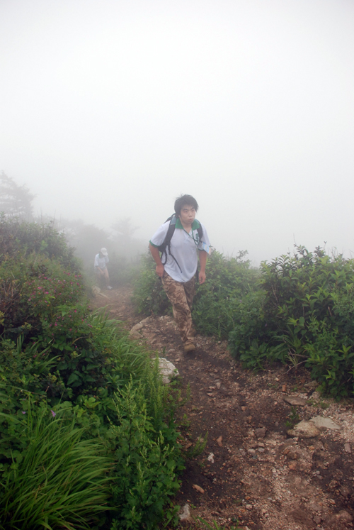 因為天氣陰沉,山里霧氣更重,能見度很低,“只覺得眼前的路越來越不好走,云霧遮住了望遠(yuǎn)的視線,辨不清方向,有種深陷其中的感覺”。