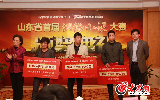 山東出版集團黨委副書記、紀委書記紀濤,山東省作家協會副主席、山東師范大學教授、博導李掖平為二等獎獲獎者頒獎