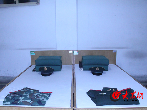 記者郁悶地來到二樓宿舍,因剛剛奔跑而提升的心率還未降下來,環顧四周,看到在這個七人一間的宿舍里,是床頭擺放整齊的“豆腐塊”,以及朝向統一擺放的牙刷和刷牙缸。