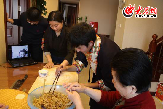 說(shuō)著,三個(gè)孩子把手提電腦一起拿到了飯桌上,爺爺奶奶和桑立新的愛人正在包水餃,孩子們也都跟著忙活起來(lái),有的搟皮、有的包餡,松塔的姐姐通過攝像頭看到后笑了起來(lái),“松塔,你在家里怎么沒見你這么能干呀,好好表現(xiàn)哦。”